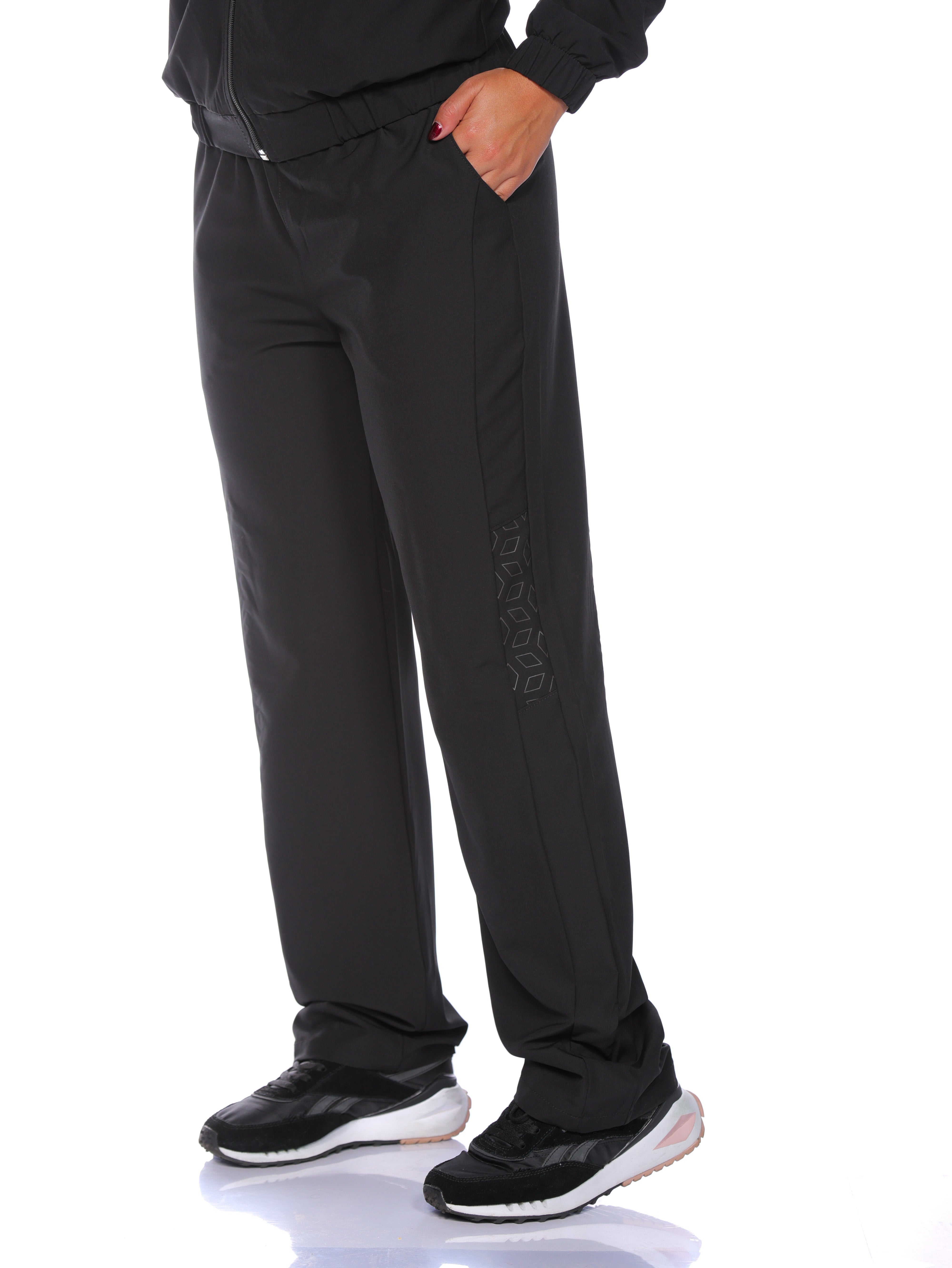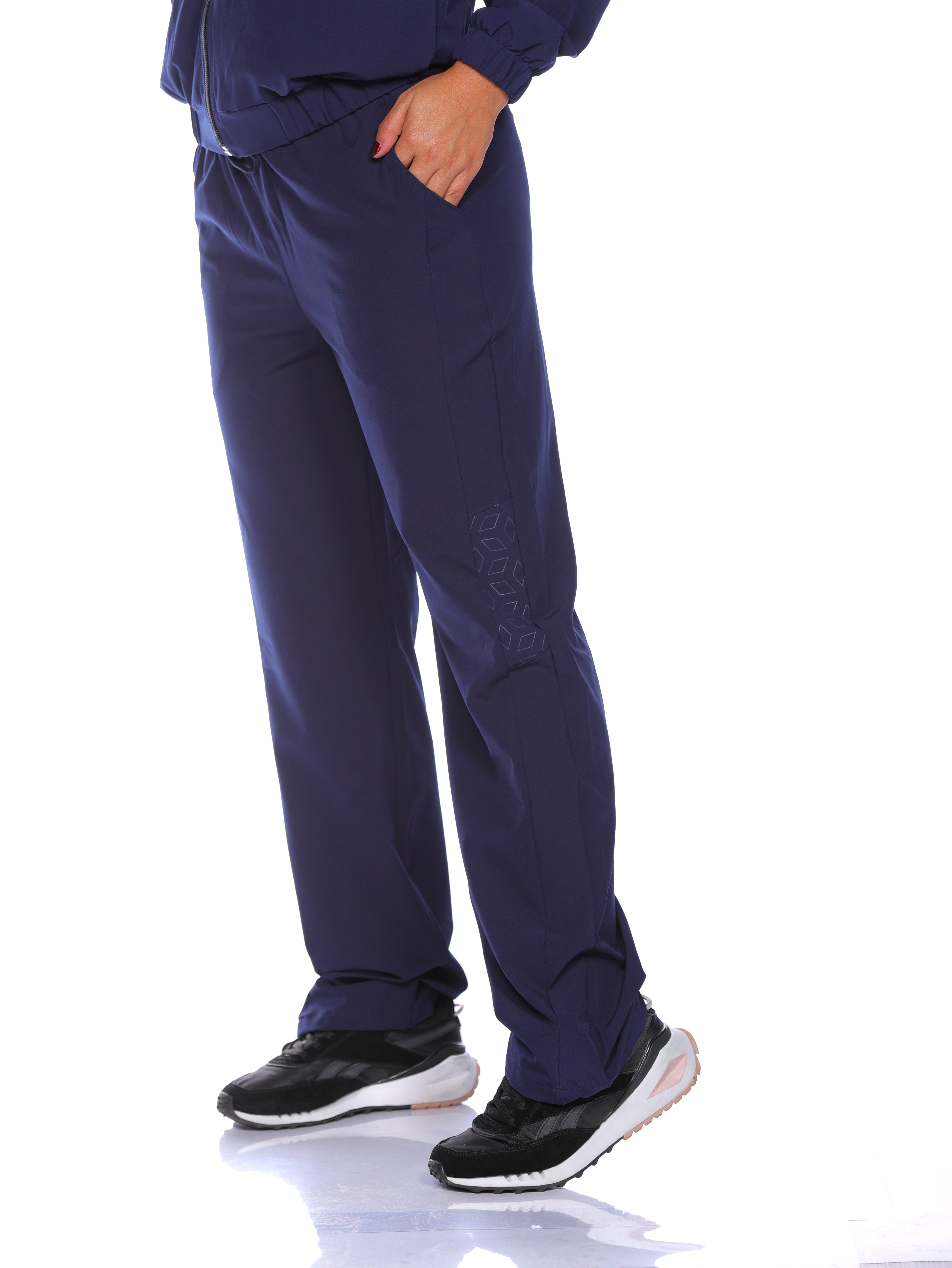 Pantalón silueta ajustada tipo parma de pretina resortada con elástico de 4cms y cordón redondo. Bolsillos delanteros con boca diagonal semicurva. Pinzas de 8cm en posterior. Corte en costados delanteros terminados de 6cms, corte en centro costados estampado. Botas dobladillas y asentadas en 1 aguja.